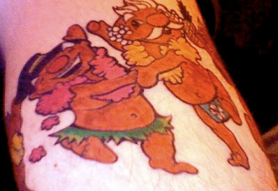 The tattoo on my leg is a dedication to the Hawaiian Village restaurant. It was located in Tampa, Florida.